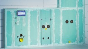 מערכות האינסטלציה Geberit Duofix, Geberit GIS ו-Geberit Sanbloc, המותקנות בשילוב עם קירות חציצה מתאימים, מתאימות לשימוש עם מחיצה מעכבת שרפה לפרק זמן של עד 90 דקות.
