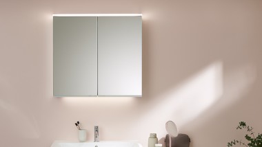 מראות עם תאורה וארונות עם מראות הם אלמנטים המושכים תשומת לב בחדר האמבט. סדרת חדרי האמבט Option מציעה מבחר מקיף של מוצרים עם תאורה עדינה ונעימה לשימוש יום-יומי.