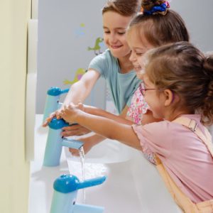 לילדים יש דרישות מיוחדות מחדרי האמבט במרכזי טיפול בילדים, בבתי ספר ובמוסדות אחרים. חדרי אמבט ידידותיים לילדים תומכים ומפשטים את פיתוחם של הרגלים היגייניים בדרך מהנה.